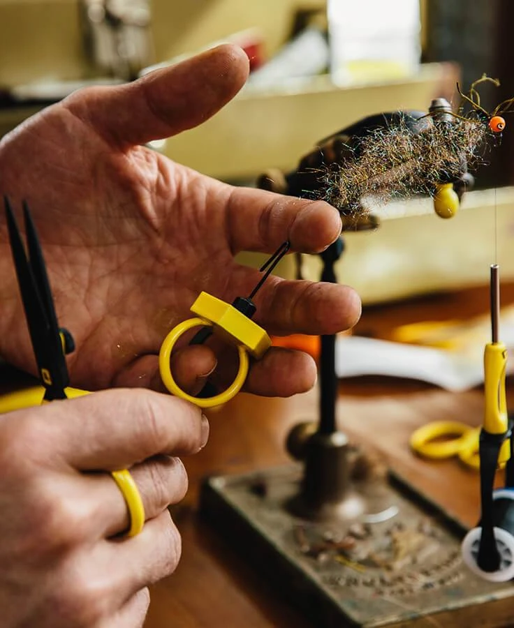 The ultimate dubbing spinner. Developed in partnership with the geniuses at Fly Fish Food, the Gator Grip Dubbing Spinner includes two tips for any spinning scenario a tyer might encounter from complex twists to dubbing loops. The hexagonal anti-rolling technology ensures that the tool stays put on the tying desk, while the ring shape allows for smooth consistent tension while palmering.